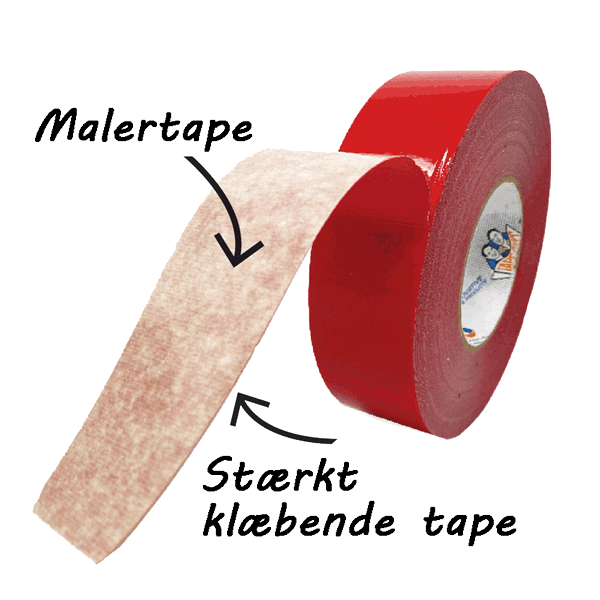 Den ene side af tapen har typisk en mindre aggressiv malertape egenskaber, der er nem at fjerne, for at beskytte færdige overflader (som malede vægge eller træværk) mod skader, mens den anden side har et mere aggressivt klæbemiddel til sikkert at holde polyfolien m.v.